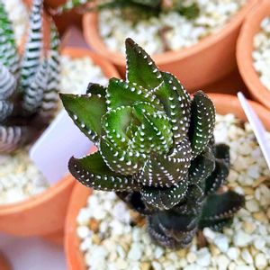 いつから居るのか何故かほとんど 投稿されない「ハオルチオプシス」達 中でも大好きな「九輪塔」のちびっ子が 少し大きくなったので載せてみました そして親株はかなり斜めに傾いています ウチでは「サンスベリア」にまざり ひっそりと地味に育っています もっと群生させたいのですがまだまだ 時間がかかりそうです