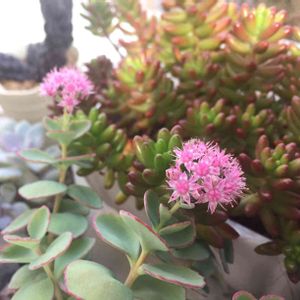 左は雨ざらし日光ガンガンのミセバヤ、右はハオルチアの九輪塔といっしょなので半日陰の外置き。 今は右の方が元気に成長してるように見えますが、毎年冬までに左が追い越して鉢いっぱいになります😊 もちろん紅葉も左の方がキレイですね😊