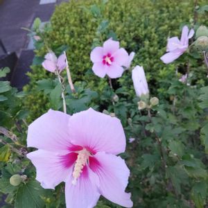 おはようございます😊 早起き出来たけど5時半はまだ暗い。 5時45分から朝散歩 今日のお花 ムクゲ 朝さんぽで出会った。 🩷🩷🩷 白いムクゲはわが家のです。🤍🤍🤍