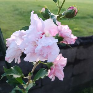 おはようございます☀ 朝夕は過ごしやすい気温になりました。 芙蓉の花 八重咲きと一重咲きです。 薄いピンクで品がありますね。💖💖🩷🩷 私も少しは品が欲しい🤗🥳