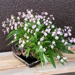 木陰に咲く小さな小さな蘭、イワチドリ🤍🩷🌱 一昨年入笠山のロープウェイに乗って、お土産にいただいた一株にやっと可愛いお花が咲きました。 ①②③咲き進んでいく様子を見てくださいね。④⑤アップで… 「渓谷の妖精」イワチドリ…本州中部地方以西と四国に分布し、渓谷の湿った岩場の比較的低い位置の割れ目などに多く見られます。小さな桃紫色の花は1cm前後と小さく、唇弁が裂け大の字に見えます。