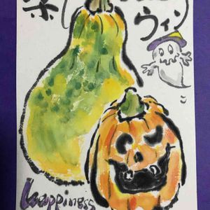 ◇絵手紙 27 ハッピーハロウィン👻 10月31日、秋の収穫祭 🎃 秋の収穫を祝う行事 子供達は 仮装をして trick or treat! と言いながら近所にお菓子をもらいに行きます だんだん昔の宗教的な風習はなくなり仮装大会の様なお祭りになりました ディズニーランドのハロウィンに娘が参加していた頃を思い出しました 不思議の国のアリス♠️♦️の衣装を夜なべして作ったけ! 昨日の事の様に感じます♡♡♡ 今年の各地ハロウィンはどうなんでしょう? 地味めに集まって リモートで盛り上がって などなど… それでも 楽しい行事🎃となります様に