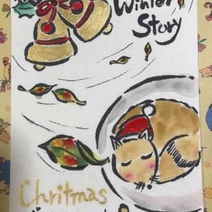 ❄︎ 絵手紙 30 冬ものがたり 急に寒くなって 雪❄︎がちらりほらり ❄︎❄︎❄︎ キツネ🦊さん!眠ってる場合じゃないよ 🎅のお祭り ❄️のお祭り Xマス🎄が やってきますよ〜〜!