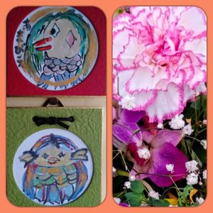 すみません🙇♀ カーネーション🌼は キレイです😊 絵手紙アマビエが すごいことに😱 恥をしのんで投稿です 💦(⁎×﹏×⁎)💦 先生がアマビエて何🤔 て言われ分からないので(^_^;) 修正してもらいました🤭
