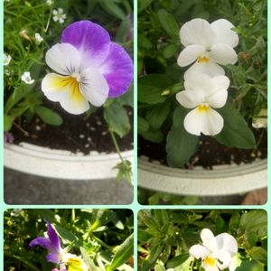 今日のお花💐「ビオラ」💜🤍 ⬆️2つは購入したばかりの頃、とても可愛く咲いていたのに、どうもナメクジに食べられてしまったみたいで、今は⬇️の何とも可哀想な姿…😭😭😭 少し駆除したけど、元気を取り戻してくれるかしら…❓️😥