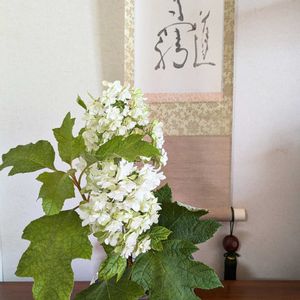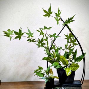 ____新緑&白花____ 1️⃣モミジ・ヒメウツギ ヤブコウジ・スズラン 2️⃣3️⃣沢山の葉の陰に わずか2輪の花が 可愛いくて✂️カットが遅くなった 4️⃣アレンジ後にパラパラ...