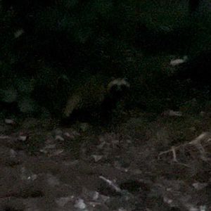 日没まで作業してるとお客さんが来訪、落ちたカキをほぼ丸呑みしながら食べ歩きするタヌキ。 私に気づいて目が合うも、走って逃げるでも無く、見つめ合う。 こちらをチラ見しながらトコトコと歩いて去っていきました。