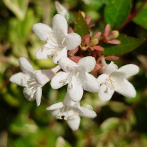 アベリア ホープレイズ 白くて小さな花がたくさん咲き続けていて、長い間楽しめます。