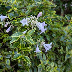【斑入りアベリアホープレイズ】 白〜黄色の斑入り葉🌿 釣り鐘状の薄ピンクの小さな花💮 ピンク色の蕾が可愛い💗 葉🌿、花💮、蕾💗 それぞれ、季節ごとの変化を見せながら 長〜く楽しませてくれている♫ ①②11/16 午後 🤳撮影 ③④11/14 昼前 🤳撮影