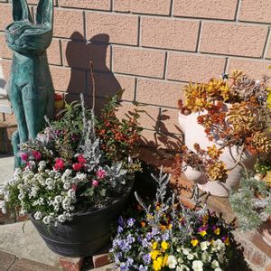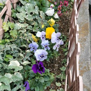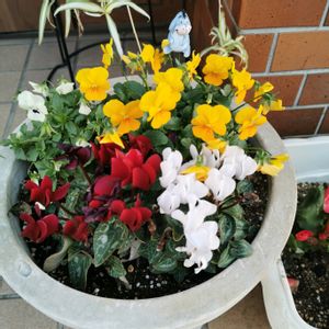 同じお宅の寄植え花壇 ビオラさん上を向いてますので 上から📸😊可愛いです