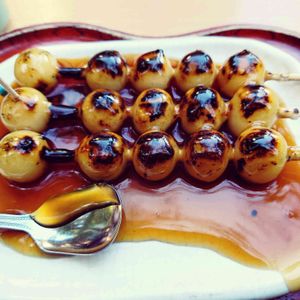 下鴨神社と言えば「みたらし団子」 その発祥の店は、創業1922年の「加茂みたらし茶屋」 もともと「みたらし」という名前は、下鴨神社内にある「御手洗」と書く池の名前。 この御手洗池に湧く水の気泡に見立ててお団子を作ったことに由来しているみたいです。 団子は一串に5個ですが、よく見れば1 つと4つに離れています。 理由は、、、 興味があれば、ネットで調べてみてくださいね(^_^) あっ! もちろん美味しかったです!
