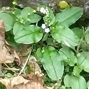 ミズタビラコ(水田平子) ムラサキ科キュウリグサ属の多年草 「水辺に生えるキュウリグサ」らしく、水路脇や渓流沿いに生えていました。 花は、5月~6月に咲く ということですが、 昨年も今年も、今の時季に花が咲いていました。 花序は、先が、くるりと巻いていて、花が次々と咲いていくうちに、キュウリグサのように、ほどけて伸びていくようです。 だいぶ前から花が咲いたと思われる、長~く伸びた花序も見られました。