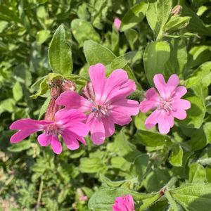 今日の仕事帰りに… 道路脇にズラーッと咲き誇っている花は 可愛らしいピンク色で ナデシコの様な桜の様な😁🌸 横から見ると縦縞の提灯に見えて お洒落な花🌸 その側で咲く淡い紫の花は 蝶々が羽根を広げて休んでいるみたいな 緑色の草とピンクと薄紫の 素敵な素敵なハーモニー🌸⚛️🌿 紫花菜⚛️ 別名 諸葛菜 大紫羅欄花 袋撫子🌸 別名 桜マンテマ シレネ
