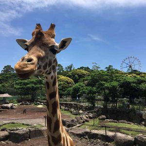 園内は紅白梅や、乾燥や潮風にも強い 馬刀葉椎(マテバシイ)等々 植物も見ものでした。 ってほとんど動物ウォッチングしてましたが。。^ - ^ ; 大自然の中のキリン君🦒 他の動物との混合展示(飼育)で、 シマウマやダチョウ、ヌー、ラマ、オリックス、ムフロンやブラックバック達と、同じエリアに同居していました⁂ 小松菜を手渡しであげました。 舌が長〜い(ちょっと怖い。。) 10/13 花王…アニマルフェイスメーカーに参加 笑 眠たそうな所や小松菜ズキなところが似てるかな😄