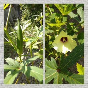オクラの花 つぼみ と オクラ 今年、苗二本を植えて見ました。 開いた🌸をまだ見ていません😔 が、何回か収穫をしています😋