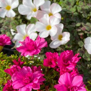 上 Oxalis sp.JL331 下 Oxalis glabra double pink 今日も穏やかな お天気のお正月です。 紅白のお花🌸 今年は大鉢で いっぱい咲いてくれました🥰 どちらも大好きです❤️