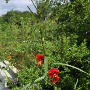 小さくて濃いオレンジ色の花 ゴジカ(午時花) アオイ科 午前11時~午後1時に咲くので この名前 花は1日でしおれておちてしまう。