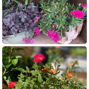 ミセバヤとカーネーション 春よりは小さいが頑張ってる って感じがするカーネーションです! 赤に近いオレンジ色の ポーチュラカ自然に 元気も出てきます♪︎