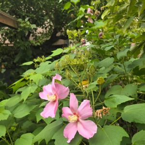 トロロアオイ アオイ科トロロ属 オクラに似た花を咲かせることから 花オクラとも呼ばれる。 ふんわり感がユニークです!