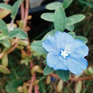 アメリカンブルーとポーチュラカ🌻夏に涼しい青と、元気が出るオレンジの色が1つの鉢に🌼