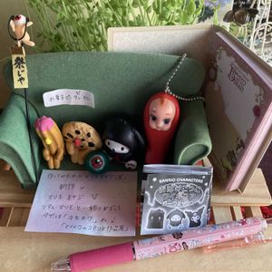 マイメロ ちゃんから6月に送ったお誕生日のお祝いのお返し🎁が届きました。 マイメロ ちゃんの可愛い作品がたくさん増えました。 祭りじゃオヤジさんピック お菓子ピータン 明太子キュピ おばけごっこフィギュアのポチャッコ マリモオヤジさん ディズニーのお土産のメモ帳とボールペン 柴犬小夏ちゃんからのマリモちゃんとマリモオヤジさん並べてみました。 たくさんの美味しそうなお菓子 どれから食べようかなあ。 お菓子かと思ったら入浴剤となんと初めてのリップパック たくさんありがとうございます♪♪♪