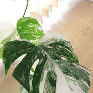 ホワイトモンステラ 以前から欲しかったモンステラの斑入りをゲット! 葉によってツートンだったりマーベルだったりと、いろいろな表情が楽しめてご満悦です。