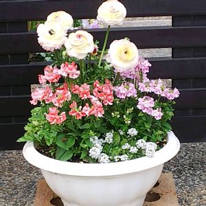 少し前の画像です。。 初めてラナンキュラスに挑戦しました。 土は水はけ良くしたけど、この📷️の後はみるみるダメになって行きました。 ネメシアは今も元気に咲いてます。