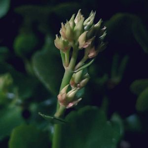 夜のカランコエさんinサンルーム 蕾あるけど徒長してるなあ…
