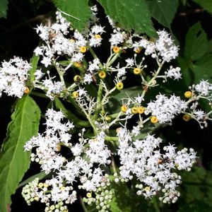 ソクズ 別名: クサニワトコ 中国名: 接骨草(ニワトコソウ) 今年もこの花に出逢いました🎶💕 道端に生えていて集散花序の小さな花。 花序のところどころに黄色の腺体(蜜つぼ)がある。 🏷ちっちゃいものクラブ 🏷純白マニア 🏷白い恋人達 に参加させていただきます。 スイカズラ科(レンプクソウ科) ニワトコ属 原産地: 日本在来 開花期: 7〜8月 花茎: 4㎜ 果実: 4㎜の球形で赤く熟す(イクラのよう) 高さ: 1〜1.5mほど