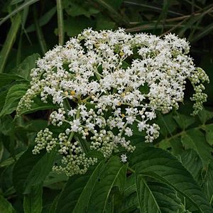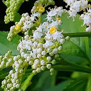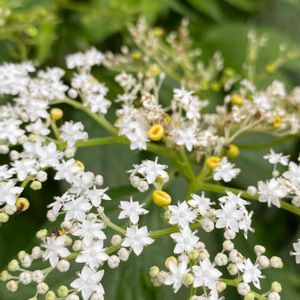ソクズ ガマズミ科 クサニワトコ属 別名クサニワトコ 一つの花は5㎜位 所々に黄色い腺体があってそこに蜜をためています(7月末撮影)