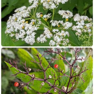 🌿ソクズ🌿 散歩の途中で何度も出逢ってるんですが、名前がわからないままでした。 やっとわかりました。 ニワトコにそっくりですが ニワトコ(木)の花は春先でソクズ(草)は7月に咲きます。 中国から薬用植物として渡来したものが野生化。 全草を薬用とします。 別名: クサニワトコ(草接骨木) クサタヅ レンプクソウ科 ニワトコ属の多年草 花期: 7〜8月 実の色 赤(オレンジ色がかった朱色)