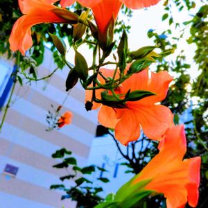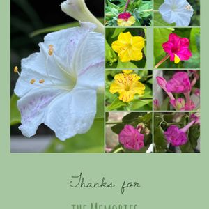 今日のオシロイバナ ↗︎真っ白‼️ 2,3,4枚目 ハイビスカスフラミンゴ🦩🦩🦩 5枚目 タイタンビカス