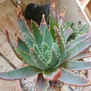 アロエとガステリアのミックスらしい。 少しずつ大きくなってきたけど、葉裏のトゲが少なくなってきた・・・💧💦