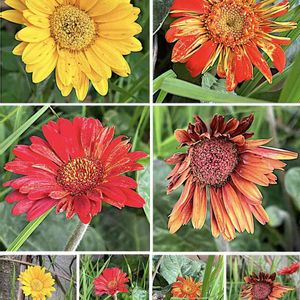 新たな年、1月。私の散歩道の道際等の草花達は、晩秋から冬の時期にあって、そして次へ時季への準備に入っているようだ--- 昨年12月からの、新たな時候の移りに観る草花の姿、姿---その1。    /また並び光彩放つやそこに、     黄•橙や赤のタンポポ似の花/  12月上旬。今年は寒暖差が多い中でも、 晩秋といってもよいそんな中での何時もの散歩道の道際。 住まいが並ぶ前の道際のスペースに、また、あるお宅側面の花壇の中に、何か光彩を放って、しっかり根を張っていると思えるような草花が幾つがポツンポツン--- ---と、ある間隔をとってそこに---。 それらは、それぞれは黄と橙とまた赤の暖色持って、あるはそれらの複色を持って。 当初は、季節外れのタンポポ(いわゆるタンポポにしては大きく過ぎる)とも、また、ヒャクニチソウとも見誤りそうになった草花である。 この草花、毎年まず春にここに咲くを観るが、それは何となく年中観ているようであるが、真夏にはその姿はなく、秋に咲く花をまたここに出会った。    ガーベラ(ハナグルマ<花車>            <‘ガーベラの特性’について、下記の「ガーベラ」より抜粋、次に:  日本での花期は4–9月頃、暖地ならば4-11月頃(ただし真夏は中断する場合あり)が多い。 切り花用として多品種あり、その多くはオランダなど日本国外から輸入された品種。 ただし、切り花のほとんどは、輸入された苗などを日本国内の農家が栽培したものである。 改良された矮性品種は寄せ植えにも向くが、地植えにも用いられる宿根草扱いされる品種もある。 > ・ガーベラ<別名 ハナグルマ(花車)、アフリカセンボンヤリ(アフリカ千本槍) 、オオセンボンヤリ(大千本槍)>(キク科) (ガーベラの属性等につて 11/3or11/4 ‘20)