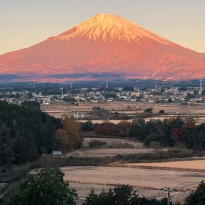 今朝の赤富士(紅富士),バラ、夜明け前の箱根 (2024.12.10 6:47前後 御殿場市より)
