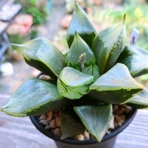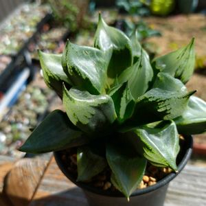 昨日まで20度台前半だったのが、今日の退勤時には30度…😅 不快指数が半端ではありません。 こういう気候の時は要注意。 裏般若。 冬にスカスカになっていた隙間が埋まり、カッコよくなりました✨ 葉先に手が当たると「痛っ‼️」というくらい鋭く、もはや「ツノ」です。 巨大ハオルチアはこれだけでいいかと思っていたのですが、最近「氷皇」を欲しくなりました😌 うーん、迷う。