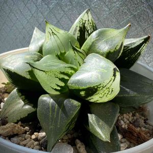 ●ススキノキ科 ツルボラン亜科 ●ハオルチア属 ●裏般若錦😻😻 おはようございます。🥱🥱🥱🥱 早朝から猫に起こされ、ベランダでハオルチアの状態をチェック……😅 全てのハオルチアを植え替え完了したので、ちょっと安心。😋 今日は、博物館へ行ってきます。😁😆😋