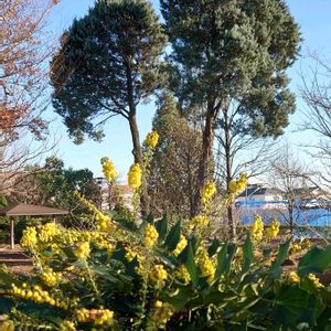 📖ヒイラギナンテン:早春に長い花穂に多数つく黄色い花、とあります。 昨日撮影しました。さすがにまだ早春という実感はありませんが、植物たちは春の兆しを感じているのかもしれませんね🧐🙌(農業試験場内にて)
