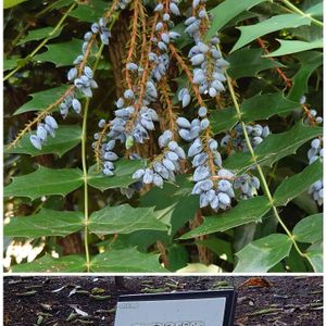 ヒイラギとは別物のようですが、名前に「ヒイラギ」が入っています📖 ヒイラギナンテン(チャリティ[ヒイラギナンテンの一種])です。黄色いつぶつぶのちっちゃな花がたくさんついていますね🧐😀(農業試験場内にて)
