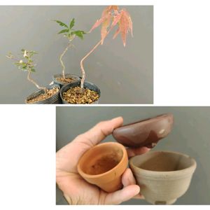 なんちゃって盆栽ごっこw ①モミジの植え替えをします すぐ飾るなら、薄くて小さな鉢がカッコ良いんですけど、まだ暑いので、やっぱり、ちょっと大きめが安心です。 素焼き鉢も用意してみました。 すぐ乾くので、冬はとても良いのですが、夏はちょい厳しい。暑いうちは二重鉢が良いかなぁ。 というわけで今回はこの3種類を用意してみました。 可愛いお猪口に穴を空けたのでも、何でも良いです ②鉢に苗木を1.0mmのアルミ線で固定します。水はけの良さが大事です。鉢穴を塞がない程度の太さが良いです。 また苗木が風や水遣りで簡単に動いたりしないように、しっかり目に固定して下さい。 鉢底石には赤玉の中粒を使用しています。あまり大きな粒は薄めの小さな鉢には厳しいです ③植える前が針金を巻きやすいですが、結構すぐ食い込んでしまいますので、巻き直す事を考えて、あんまり下の方までは巻かない事。 これもアルミ線1.0mmで良いです。100均で手に入ります。 曲げるのは、植えてから、全体のバランスを見ながらが良いです。 用土は赤玉小粒に真砂土(山砂)を1:1にライズ菌をちょっとだけ混ぜ込んでいます。鹿沼は水に浮いて使いにくいと思います。 今回は入れなかったんですけど、元肥にマグァンプ入れたり、防虫剤にオルトラン入れても良いです。 用土がよく詰まるように箸などで突っついて、一粒でも多く入れるようにして下さい。 鉢に余裕があれば、ウォータースペースはあっても良いです。 底面給水で水が上がってくれば、OKですが、上から掛けるのであれば、鉢底から微塵が出てくるまで、しっかり水遣りして下さい。 苔を張ったらカッコ良いですが、表土の乾き具合がが分かりにくいですので、張っても張らなくても良いですよ。カビなども生えやすくなります。 百均のティラノサウルスのフィギュアを添えにして飾ってみました。¥100とは思えない、出来の良さですw ④水石などを添えにしたりもしますが、これはその辺で拾った石っころに台を付けています。 なんちゃって盆栽ごっこなのでw 敢えて二重鉢にしています。 二重鉢、二重鉢と言っていますが、別に鉢でなくても、ジベタリアンで良いんです。 ⑤薄い鉢。 裏に落款がありますけど、そんなに良いものでもないです。 石灯籠¥200くらいだったかな ^^; 気楽にカジュアルにやってみて下さい。お金掛けなくても、イケます (*^^*)
