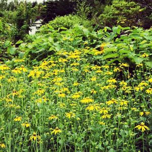 オオハンゴンソウ(大反魂草) キク科、ハンゴンソウ属 帰化植物。 山地等に群生して、繁殖が強く、特定外来生物に指定されている。