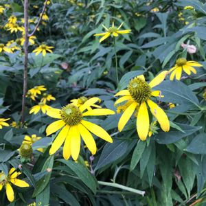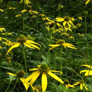 オオハンゴンソウ (大反魂草) 🌿キク科 *高さ2mを越える個体が多い多年草 *頭花は径約10㎝、花庄が高い円錐形なので、筒状花が盛り上がるように集まり舌状花がそれを囲む 群生するので見応え有ります🍀💛💛💛