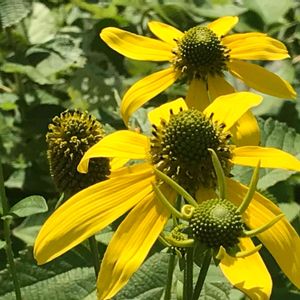 No.982 オオハンゴンソウ 和名:大反魂草 キク科オオハンゴンソウ属 その1 和名は、ハンゴンソウ(反魂草)に似ているが、花が大型であるため🎵 花の大きさは6センチくらいで、舌状花は10~14枚です🎵 でも、咲きかけの花は舌状花が8枚のもあります😅 このあと、最低2枚でてくるのか、雑種なのかはわかりません🤔 筒状花は緑黄色です🎵 この筒状花が暗褐色なら、アラゲハンゴンソウです☺️ 葉は上部は3浅裂するか、3深裂しますが、下葉は5~7裂します🎵 御本家との違いは、花以外に葉があります☺️ 葉はNo.983を見てね🙄