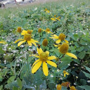 6月17日散歩道🚶♀️🚶♀️曇り 歩道脇の主役 「オオハンゴンソウ」 と仲間 乱れ咲きです