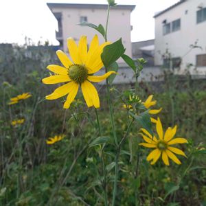 1️⃣ ご近所さんのノコギリソウ 🏷今日のお花 2️⃣ 金曜日に蕾だったひまわり🌻 枝咲きチョコレートひまわりと 赤ちゃんひまわり、 昨日曇天の中咲きました 今日はあめ〜🌧️ 週間天気も☀ないな… 蝦夷梅雨だな… 🏷日曜ビタミンカラー♪ 3️⃣ 夏になると至る所にコイツが… 軽く2mは超える高さにも💦 厄介者です