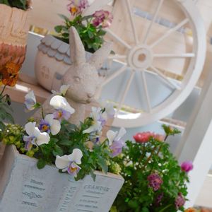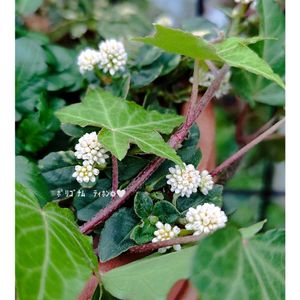 ちいさな寄せ植え 寄せ植えに欠かせない 葉物🌿 斑入りポリゴナム ティホン ➀一緒に、写るアイビーは フェンスに絡まる葉物です。 ②③パンジーフェデネージュボンソワレ