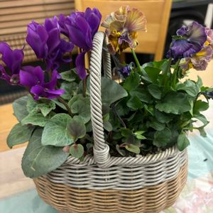 綺麗なブルー🩵に目が留まってカゴ寄せにしました! 桂楓園さんのフェデネージュブルーと花日和さんのファルダに葉ボタン 今年はビオラパンジーにハマりました😍