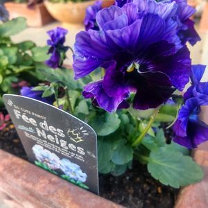 今日の2回目投稿パンジー《フェデネージュ》 深い紫色のお花がヒラヒラしています こちらもネット注文なのですが、しっかりした苗が届きました