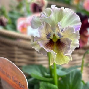 やっと可愛く咲いてきたので紹介します~フェデネージュ モネ️ブルー🩵✨ ラベルにはパンジーってあるけど見た目はどう見てもビオラなんだけどねー😅