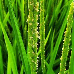 稲の花 稲の花を見たことないという人結構いると思います。これ? 花びららしきものはほとんど確認出来ず小さな小さな蕊だけが飛び出しています。これが稲の咲いた状態なんです。こんなに小さいとほとんど近寄ってみないと見えませんね。なので稲の花いつ咲いていた?????って思うのです!
